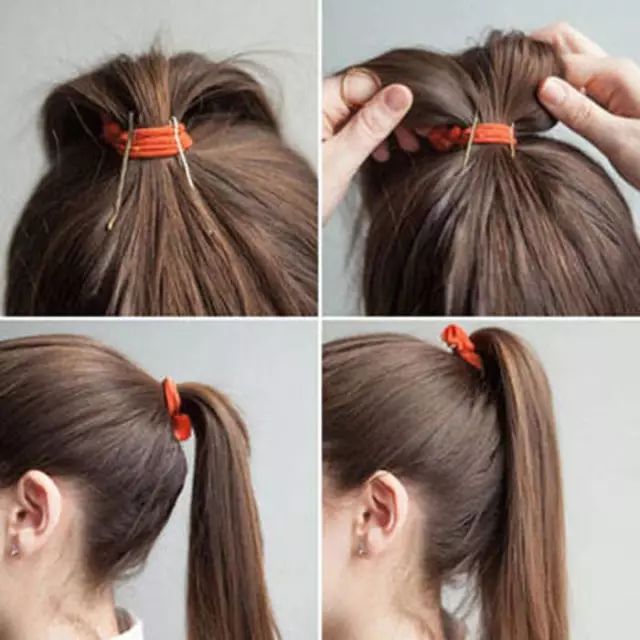 還有一種情況大概是大家都會有的:高馬尾會下垂,把馬尾扎得精神,不得不紮緊。這種馬尾容易下垂的情況其實在直接就有辦法解決了,一縷頭髮繞著發圈後再用兩個根髮夾對稱夾好。