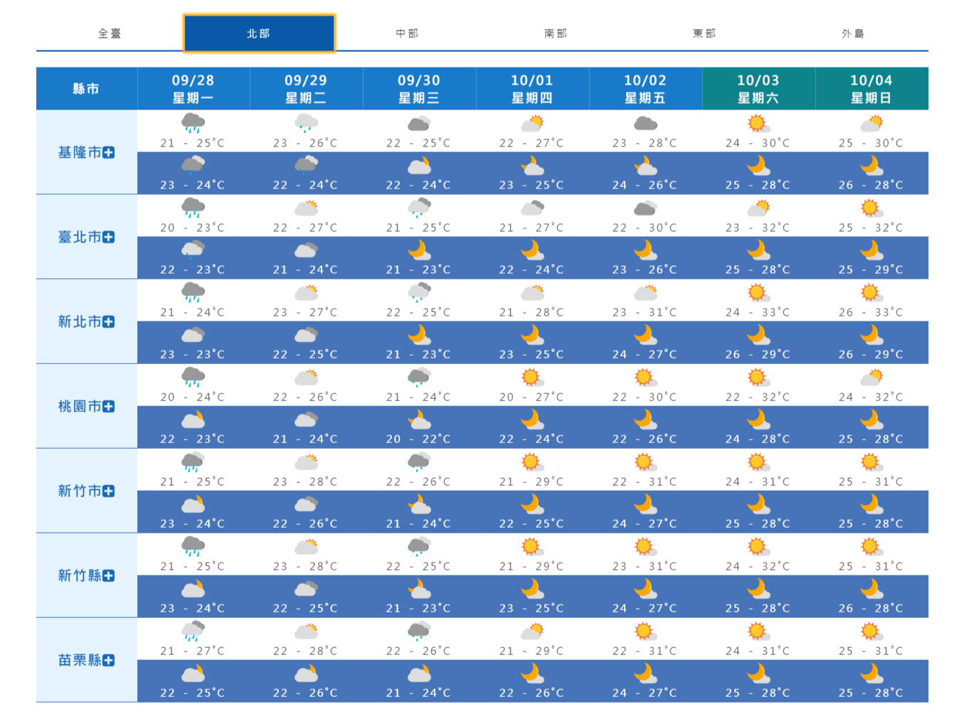 ▼北部未來一周天氣。(圖/中央氣象局)