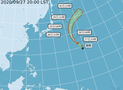 ▼輕颱鯨魚預測路徑圖。(圖/中央氣象局)