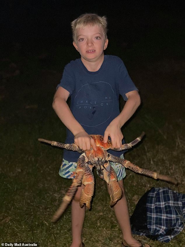 ▼「我交給我兒子一個任務,就是保衛我們的晚餐,將椰子蟹從我們吃飯的地方弄走。他接下這個任務非常高興。我們其實很習慣看到椰子蟹,並不會覺得特別不舒服,但牠們緊盯著我們的食物,還爬到桌子、烤肉架上!」