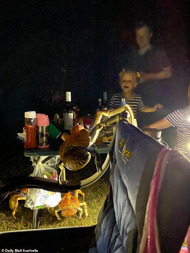 ▼另一戶露營的家庭說:「我們睡覺的帳篷距離吃飯的地方有一段距離,但睡覺的時候我們能感覺椰子蟹在撓我們的帳篷。」