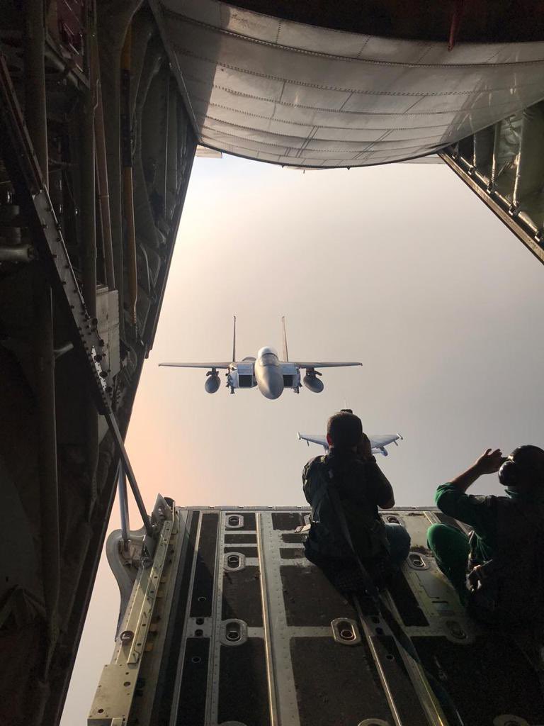 ▼據悉,攝影師搭乘運輸機,拍攝後面飛行的噴射機,而這段推特影片在上傳後,短短時間就被廣為流傳,並且已經擁有超過14萬次的觀看紀錄,引起網友們的熱議。