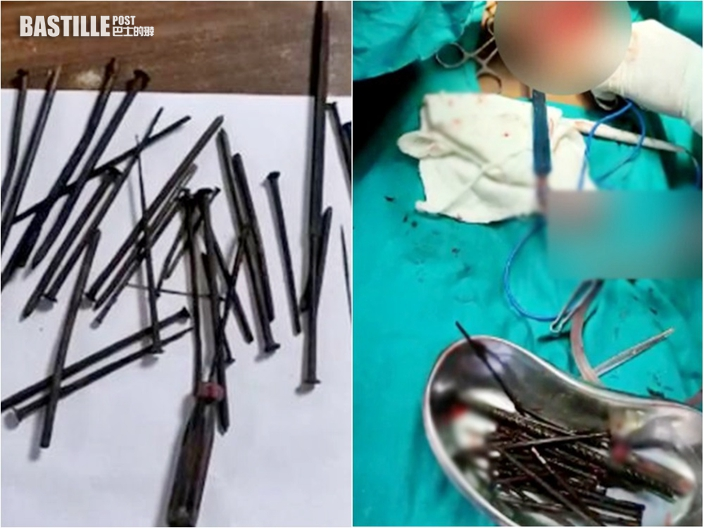 印度一名男子近日因腹痛求醫,醫生檢查後竟在他腹內發現30根長7厘米的鐵釘,縫衣針及螺絲批等各種物品,總重量約為300克,家人得知後亦大感驚訝。