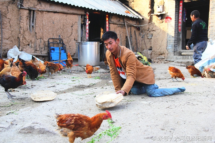 小丁家距離嵩縣縣城約30公里,山路蜿蜒盤旋,一側是陡峭岩石,一側是數米深溝。每次出發前,他都艱難地爬到三輪車旁,一隻手拉著座椅把手,另一隻手按著車的下部,使勁一蹬,坐在三輪車車座上。如果拉著雞蛋,他要走2個小時才能到縣城。
