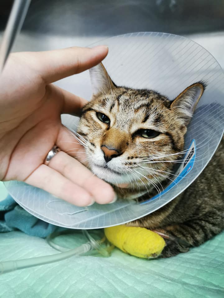 ▼這隻叫Tiger的貓咪非常親人,但牠有一段可憐的過去。當初原po的兒子在路邊的水溝中發現了牠,牠被人弄斷手臂,奄奄一息。原po和兒子連忙帶Tiger去看獸醫,為牠做接骨治療。