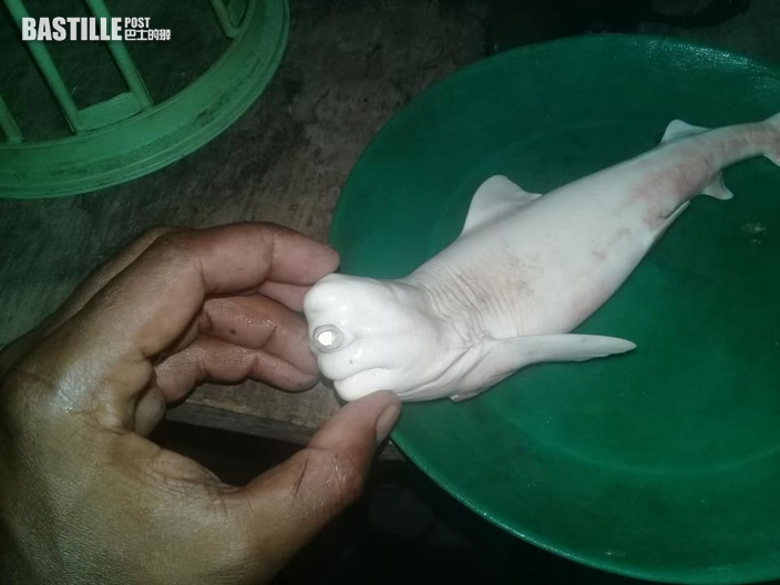 漁民在清理母鯊的內臟時,發現牠肚子裏發現了3隻小鯊魚,但當時已全部死亡,只是其中一隻長相奇特,不但只長有一隻眼睛,而且全身是乳白色的。於是漁民把牠送到海事處檢驗。