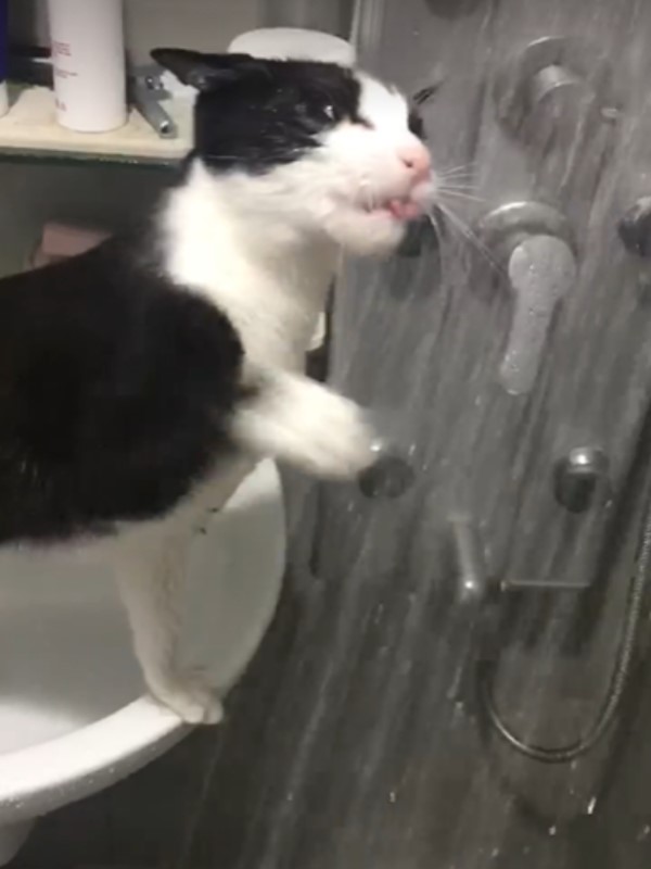 ▼有一段時間主人每次洗澡牠都要跟著進浴室,就是為了戲水,哪怕全身弄濕都無所謂。因為不怕水,飯糰也很愛洗澡,跟其他拒絕洗澡的貓咪截然不同。