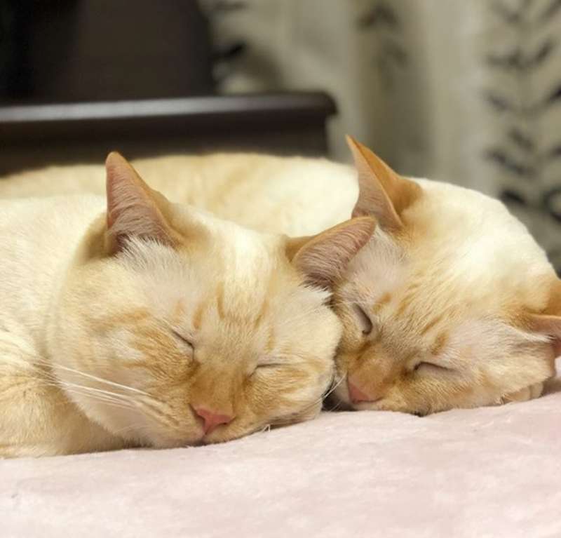 ▼兩隻喵喵已經四歲囉,平常沒事就喜歡依偎在一起。