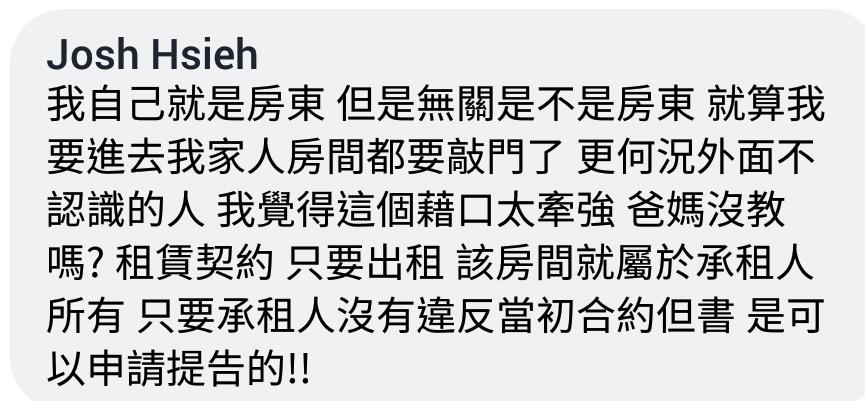 房東給工人鑰匙擅自開房客房門…..女房客氣炸