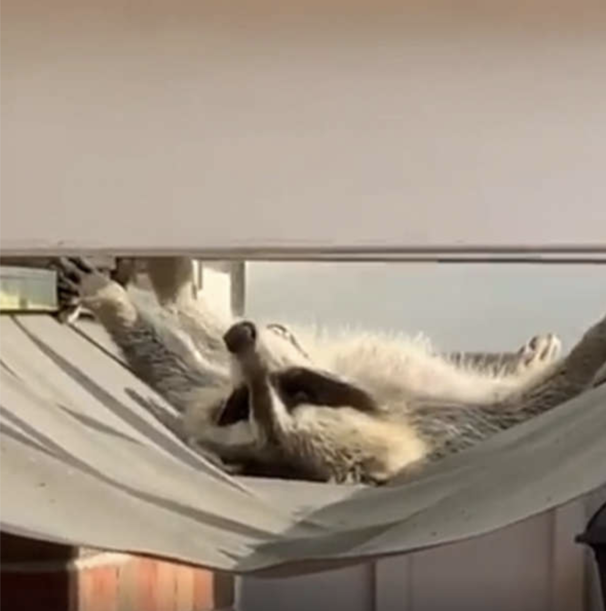 豪爽喔~ 呆萌浣熊「霸佔遮陽棚」曬太陽 伸懶腰「大字型躺平」屋主呆:當度假村?