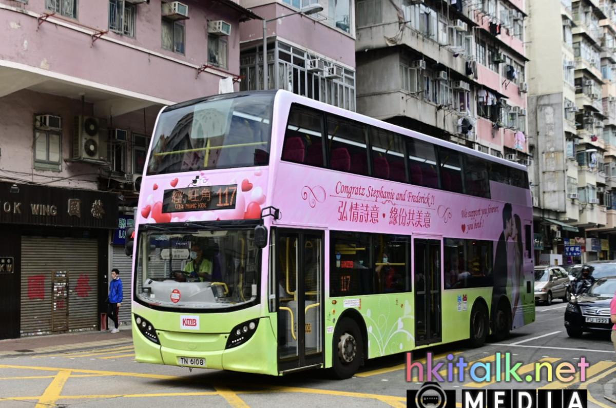 藝人鄭俊弘、何雁詩將於11月7日結婚,九巴 ATENU629 (TN6108) 貼上了祝賀兩人結婚的全車身廣告,並於今日開始行走指定路線 117,該路線相信是取其結婚日期的數字。#鄭俊弘 #何雁詩#經西九龍中心#唔知前區議員會唔會又投訴