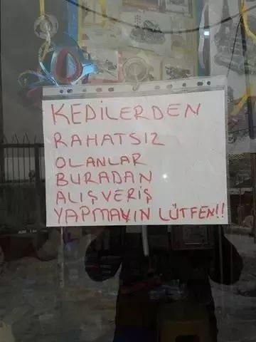 ▼這位商店老闆開放讓浪貓進入店裡休息,便在店外貼上告示「不喜歡貓的人,別進來,去別的地方買吧!」可說是十分霸氣!