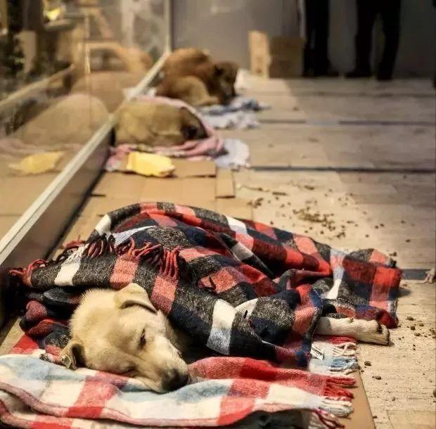 ▼寒冷的冬日裡,路邊的浪浪不再單薄的睡在地上。