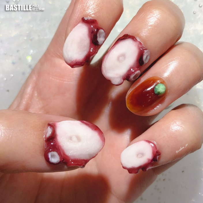 迷你生章魚片配豉油芥末?古怪海鮮造型美甲超逼真!