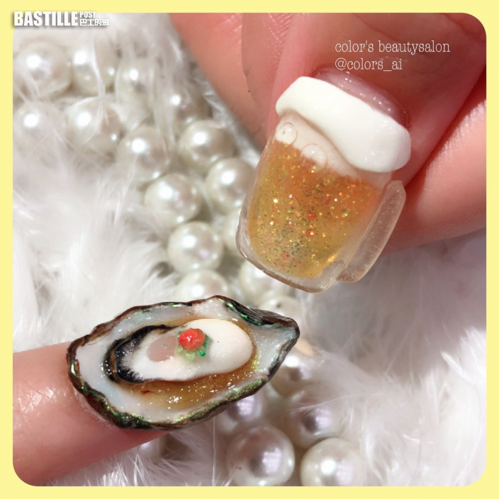 很多美甲師都具備潮流觸覺,用巧手為愛美女士的指甲換上最新最潮的美甲造型,如水晶、花雕、線條、卡通人物等。不過日本就有一位天生喜歡新奇古怪事物的美甲師,最近她在推特曬出新作,竟然是生章魚片及蠔仔造型美甲!美甲的造型非常逼真,讓人垂涎欲滴,網民看了都嘆為觀止,更笑說真的好想啜食每根手指頭!