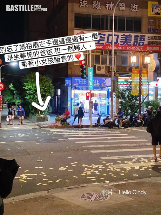 該名媽媽噓寒問暖之下,得知他們一家人是從三芝來到饒河夜市擺檔,攤上的番薯及薯仔都是自己耕種,每袋只賣100元台幣(即約27港元)。她呼籲大家,經過的話不妨順手買一些野薑花、番薯或薯仔回家,「夜市隨便吃吃喝喝都不只一兩百元 (台幣),但若這些購買能夠幫助需要的家庭,何嘗不是一種溫暖的力量呢?」