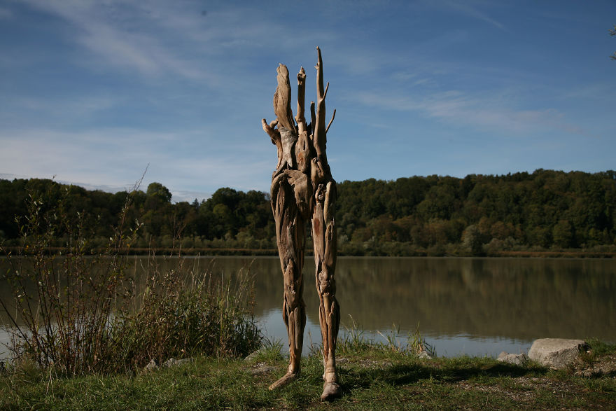 ▼朽木獲得新生,這就是藝術的魅力。在藝術家的手中,這些朽木變成了人形,整體形象非常怪異,卻又栩栩如生,似乎生硬的軀殼內存在著靈魂。