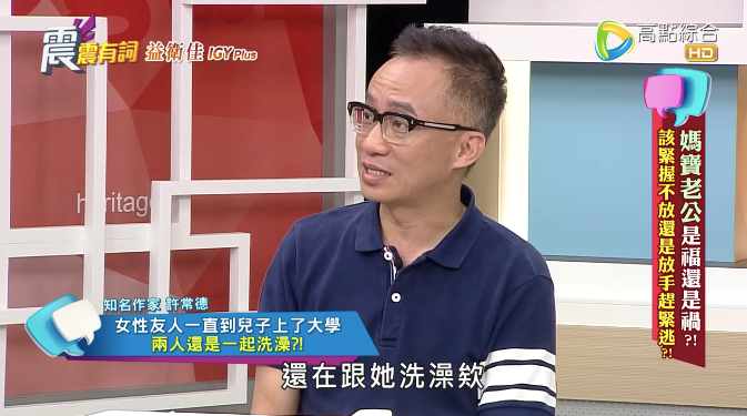 許常德接著表示,大家很好奇到了大學還跟媽媽洗澡的小孩是如何?結果發現這個男生很會讀書,除了考上台大之外還很陽光。對此,許常德得到一個結論,「後來我就想一想,其實這世界上有很多族群,可能全家共浴,都是一輩子的,這件事情在某個部份是很自然的。」