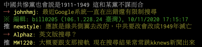此發現一出,網友紛紛表示最近 Google 一直在出錯,且還有限制搜尋,笑指「大家都想消滅中華民國」。《台灣蘋果新聞》欲詢問 Google,但其僅以短訊回覆,指因假日、與美國總部的時差,其還需要一點時間進行內部調查。