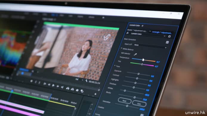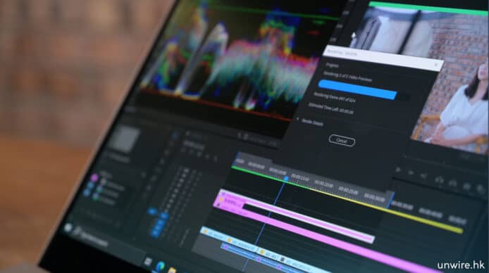 拍攝之後的後期製作往往需時,有做開剪片的話對於電腦的可靠度都會很在意,影響每次出片的運算時間,也要避免 Lag 機和色準不足等等問題。在測試中,用了接近 15GB 的影片素材,在 Premiere Pro 編輯時相當順暢,連 Pre-Render 也夠快速。