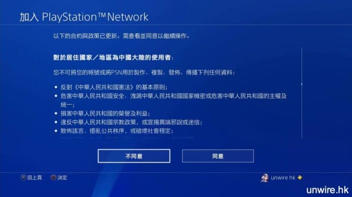 在這兩三日打開 PS4 的用家,或會留意到其發布了新的 PSN 使用者合約與政策,用家要同意才可繼續使用。而在更新後的合約中,似乎有數條疑似跟中國「國安法」相關的條款,於是有玩家在網上討論該事件,以及擔心不能再玩遊戲的問題。而實際上,PSN的條款是寫明「不包括台灣地區、香港特別行政區和澳門特別行政區」。