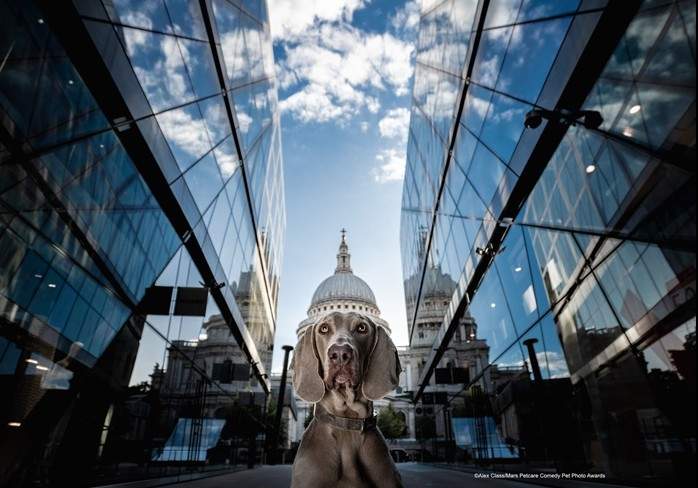 ▼攝影師Alex Class的作品《Saint Paul’s Cap》:這位攝影師不僅擅長拍動物,還很擅長拍建築。這次他讓狗狗坐在畫面中合適的位置,狗狗背後的建築露出尖頂,就像戴著帥氣的帽子。