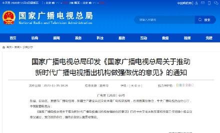 國家廣播電視總局近日頒佈《國家廣播電視總局關於推動新時代廣播電視播出機構做強做優的意見》通知