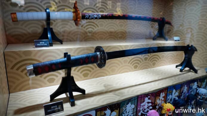 ▲今次展覽還展出了《鬼滅之刃》男主角炭治郎的日輪刀,以接近動漫設定的 1:1 打造,首次在香港曝光,於明年發售。