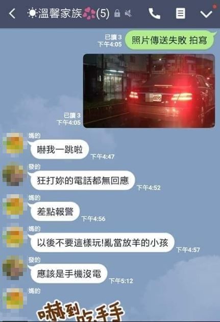 發現誤會大了,也趕快硬著頭皮補傳照片到群組,尷尬地說:「照片傳送失敗,拍寫~」讓爸媽直呼:「嚇一跳」、「狂打你的電話都無回應!」、「差點報警!」引來一陣碎念。