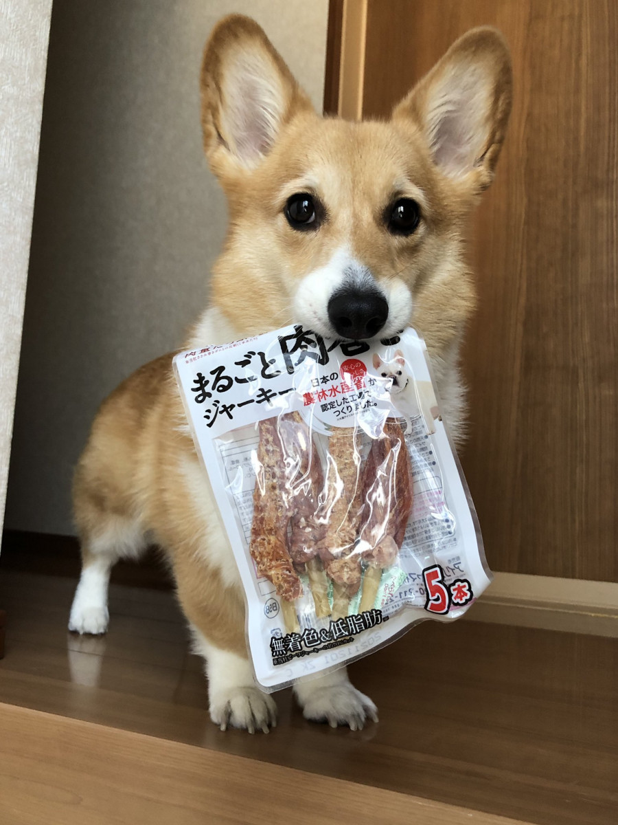 吃貨柯基「叼整包肉乾」小碎步迎接 眼神對媽「投射渴望光波」:可以幫偶開嗎🥺