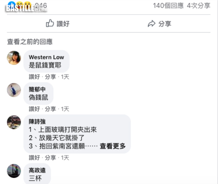 該名女網友家中放了祈福招財金雞,並以透明盒子罩住,沒想到卻被老鼠入侵,她趕緊發文求助網友「請問現在該怎麼處理?」,並在fb社團「爆廢1公社」貼出2張照片,引來大批網友驚呼連連。相中只見桌上擺著用透明玻璃盒罩住的祈福金雞及金蛋,裡頭還有不少硬幣,萬萬沒有想到的是,竟然鑽進一隻大老鼠,甚至還趴坐在金雞身上。
