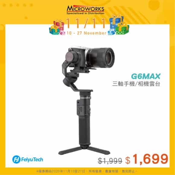 - 參與商戶只限香港代理商 Microworks 授權的 FeiyuTech 特約經銷商。