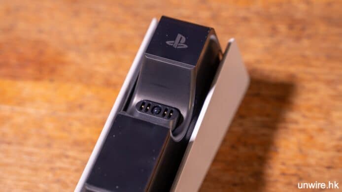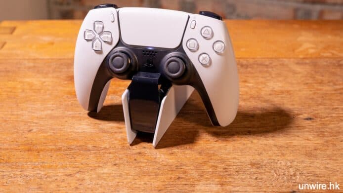 每次充電要插線實在不方便,而且數年來 USB Type-C 接口拔插太多次,也會出現壽命問題。DualSense 充電座就是一個簡單的 PS5 手掣充電工具,它附隨了一個變壓器,在插上電源後,可同時為 2 個 PS5 DualSense 手掣充電,它以突出式電源端子直接接觸手掣下方的充電端子,放下即可充電。