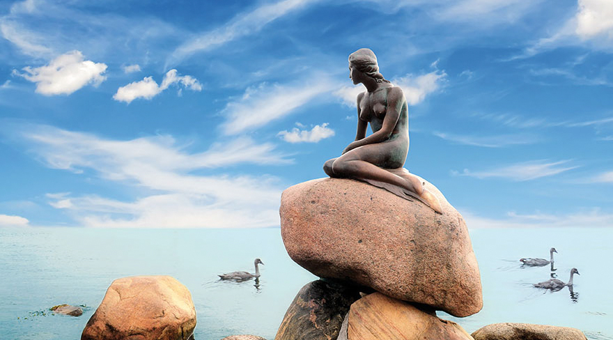 放遠看,原來小美人魚雕像這~麼~小~一個啊!