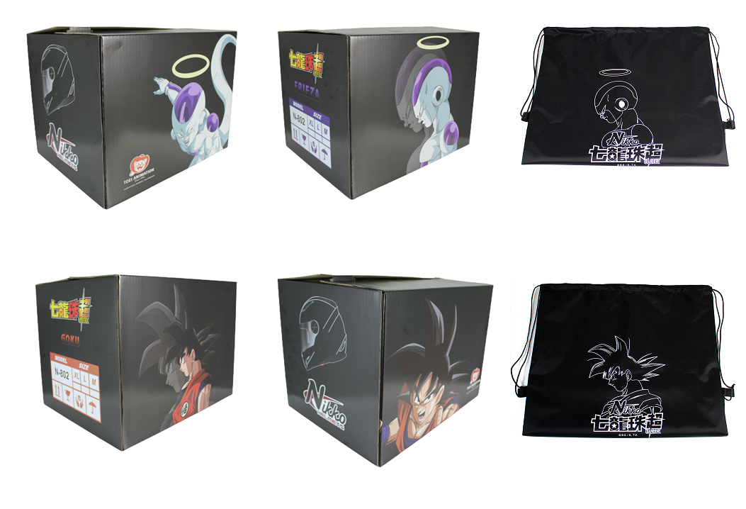 除此左頭盔本身之外,今次正版授權嘅頭盔,其專屬包裝盒及索繩袋亦非常值得收藏,因為盒及袋上亦分別印有悟空及菲利嘅畫像,型到爆! | |