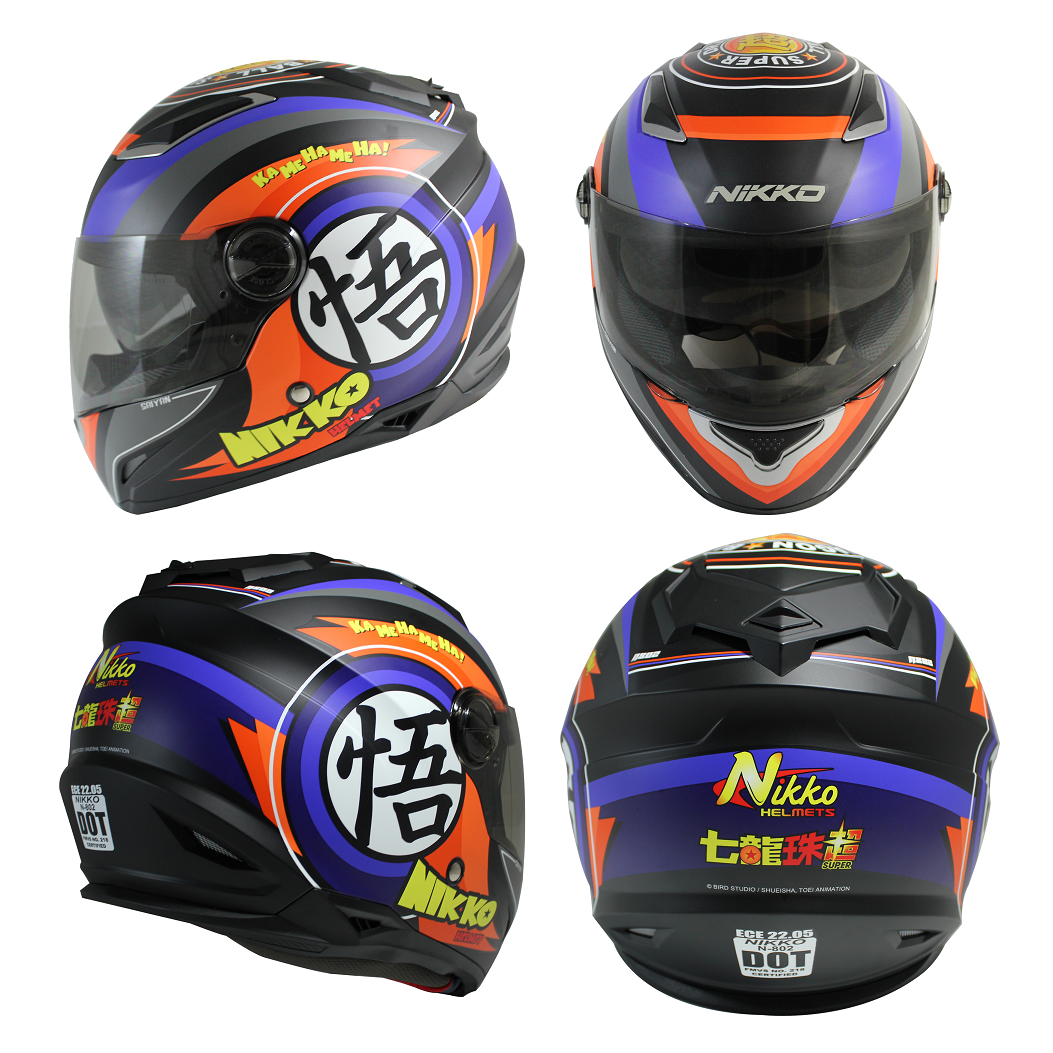 NIKKO HELMETS今次推出嘅兩款《龍珠》電單車頭盔,主題分別為主角孫悟空及第一反派菲利,其中悟空款式以橙色及深藍色為主配色,並在兩旁加入標誌性嘅「悟」字,完全突顯出悟空呢個角色。 | |