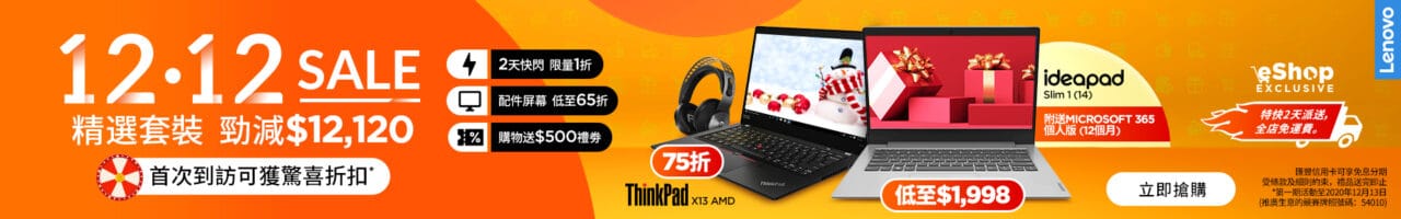 去到年尾,各品牌的優惠可說是一浪接一浪,早前 Lenovo 推出的感恩節黑五優惠反應著實不錯,他們近日決定加碼,趁 12.12 雙 12 購物節快將來到,再次與 unwire 聯乘推出一系列電腦產品優惠,不少產品不但可低至六折入手,指定產品更推出快閃價優惠,低至 1 折已可入手心水機款,錯過了上次優惠的網民,今次就不要錯過了!