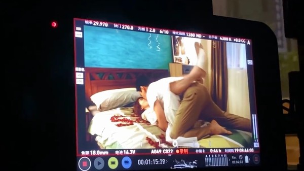 不僅如此,禾浩辰就這樣帶著她到佈滿玫瑰花瓣的床上,郭書瑤則是跨腿夾著對方,2人下秒開始撫摸對方,還有試圖解扣的戲碼,不過郭書瑤立刻抓著禾浩辰的手,似乎是在訴說著「不行!」最後喊卡後,郭書瑤先是嬌羞的笑著,而禾浩辰看見她害羞的模樣後,下秒也跟著害羞地笑了出來。