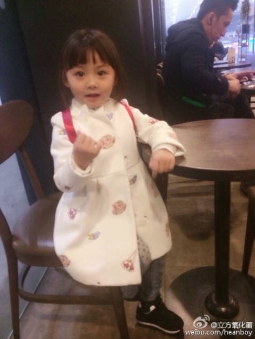 雖然乍看還是一位可愛的小妹妹,可是畫風卻跟女兒完全不一樣,飽滿的臉頰肉像是快溢出來,整個人往橫向發展,想必爺爺奶奶家的伙食應該很好XD