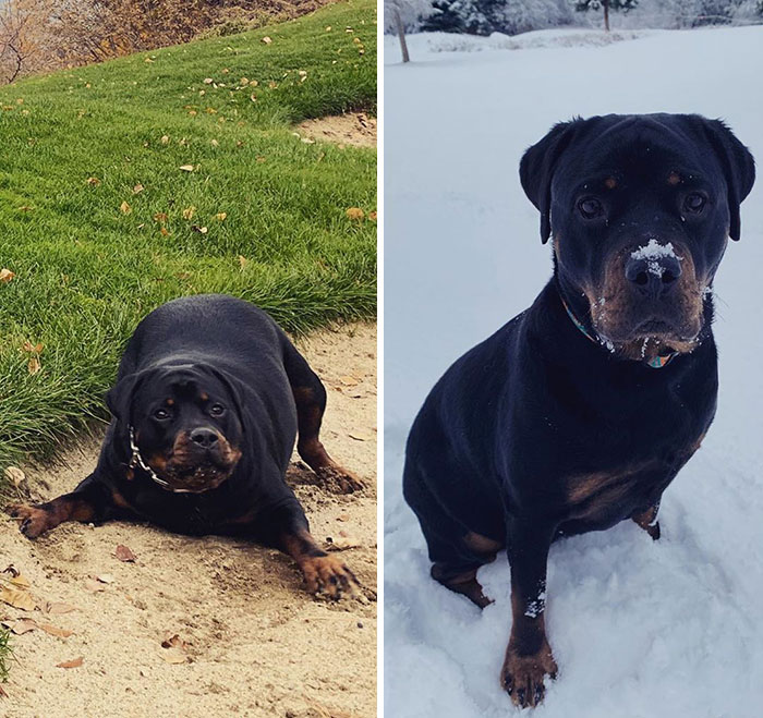 狗狗過重是一個大問題,雖然肥肥的很可愛,但是可能會影響到健康。如果你家的狗狗也有過重的問題,就從控制飲食、多多活動開始吧。看看上面這些狗狗減重前後的對比照,簡直太勵志了~
