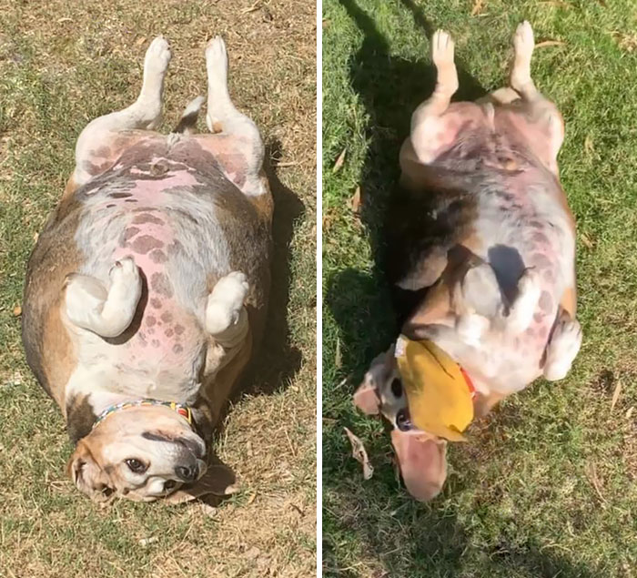 ▼「我們在10月底收養牠,當時牠體重過重。來到新家後牠每週體重都有減輕,看起來更有精神了。」