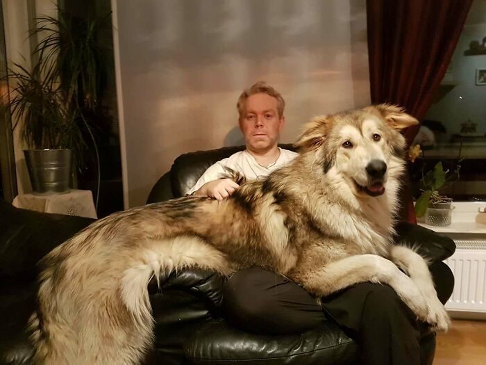 這些狗狗已經長大,卻還沈浸在小時候的錯覺裡。他們努力擠到主人的懷裡撒嬌求摸摸,看起來超可愛。雖然主人抱著牠們很有壓力,但也很幸福,這應該就是甜蜜的負擔吧!