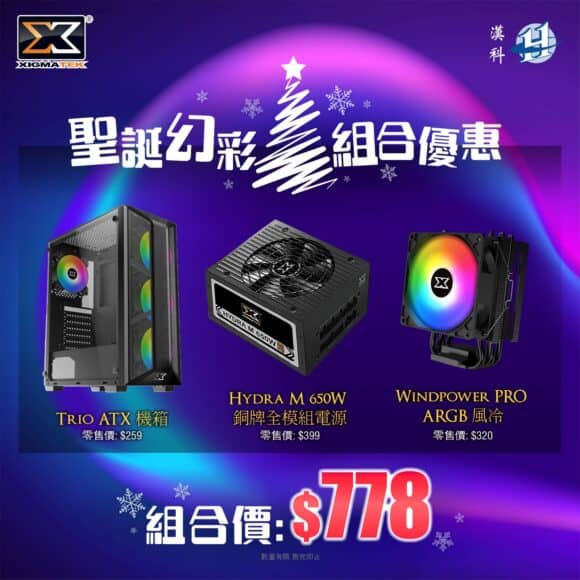 另外亦以 HKD $778 的組合優惠價享受 Xigmatek 三重組合砌機優惠。j5create 亦趁機舉行年終感謝祭,全線產品均以優惠價發售,當中更包括 JCT425 螢幕支架連轉接器、JVA02 及 JVA04 Video Capture Adapter、JCD543 13 合1 筆電擴充座、JCD387EK 磁吸式 UltraDrive、JCD383 多功能轉接器、JUP44100 100W PD 充電器套裝等等。更多詳情請參閱漢科聖誕開倉優惠官方網站。