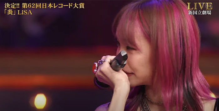 LiSa講得獎感言嘅時候忍唔住哽咽 截圖自:youtube | |