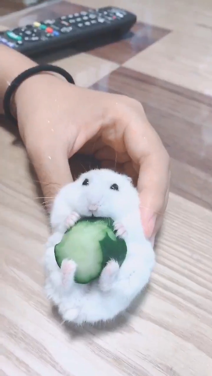 ▼要如何讓倉鼠化身為「必倒翁」?原來只要一片小黃瓜就可以辦得到!