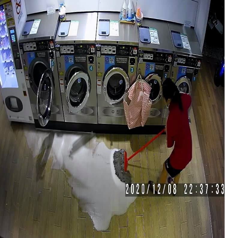 ▼洗衣店老闆非常感動,他將錄影畫面po到「爆料公社」上,並說自助洗衣店經常遇到一些客人,用洗衣粉就像不用錢一樣加很多,導致泡沫外流,弄得地板上到處都是。這位女學生願意主動負責清理,讓老闆忍不住讚道:「誠實又努力收拾的客人,我們心存感謝。這運動服左胸有寫中二中,品德教育該稱讚!」