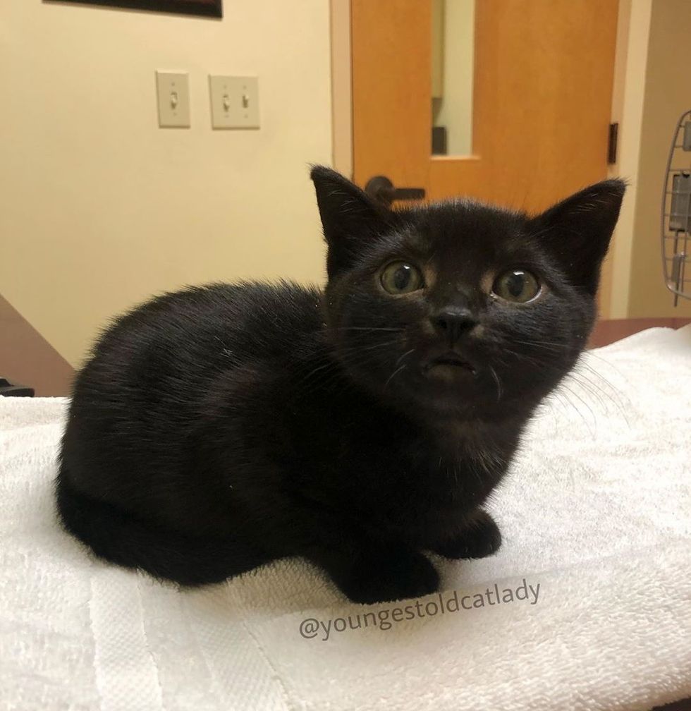 救援小黑貓發現「旁邊同伴只有牠一半大」 善心女領回家「現在已長成天使」