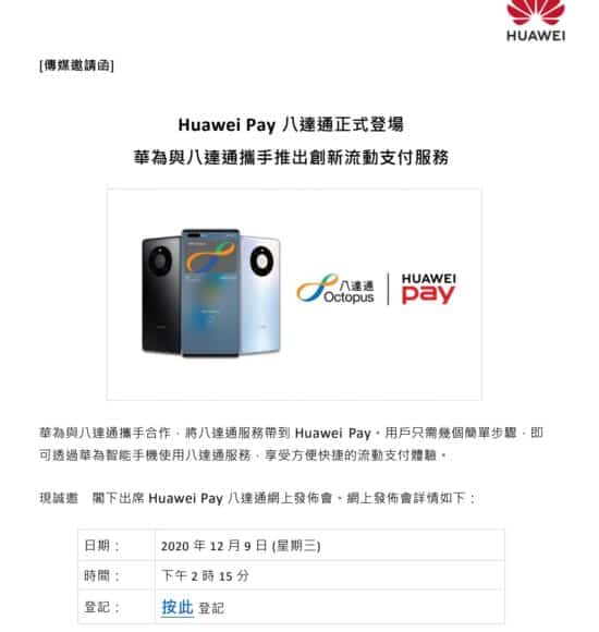 詳細資料將會在2020年12月9日星期三下午2:15舉行網上發佈會, 屆時將會有更多相關資料公開, 相信對於華為智能手機用戶來說是一個好消息。 不過近日就有政府專家提出, 考慮將八達通連結安心出行計劃, 現在與華為合作推出流動支付服務, 可能會引起公眾關注。