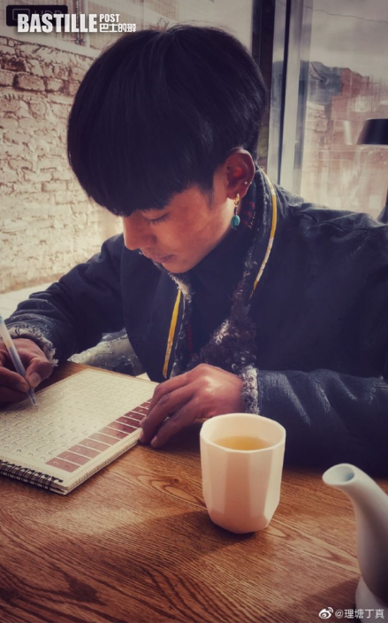 2017年丁真只有17歲,雖然臉龐仍然很稚嫩,但是五官已長得非常標緻,再加上一頭寸髮,更是有股擋不住的帥氣,令人忍不住看多眼!還有一張丁真斜望鏡頭並比出「心心」手勢的照片,流露出少時的純真。