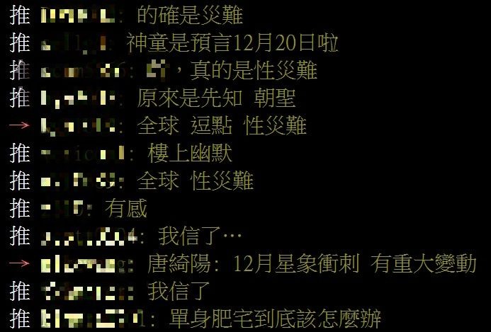 一位鄉民15日在PTT發出貼文,直呼「印度神童早就預言了!現在應驗了吧!」說明YT更改條款,現在就連P站也發生更大的憾事,讓他崩潰大喊「有什麼比2020更糟的?」貼文曝光後,立刻引起熱議,網友紛紛哭喊,「單身肥宅到底該怎麼辦」「我真的信了」、「的確是災難」、「原來是先知,朝聖」、「真的是性災難」、「先知給推,我當初看到這個新聞還嘲笑了一下」、「真的是先知!這對宅男來說應該是史上最重大的慘案」。